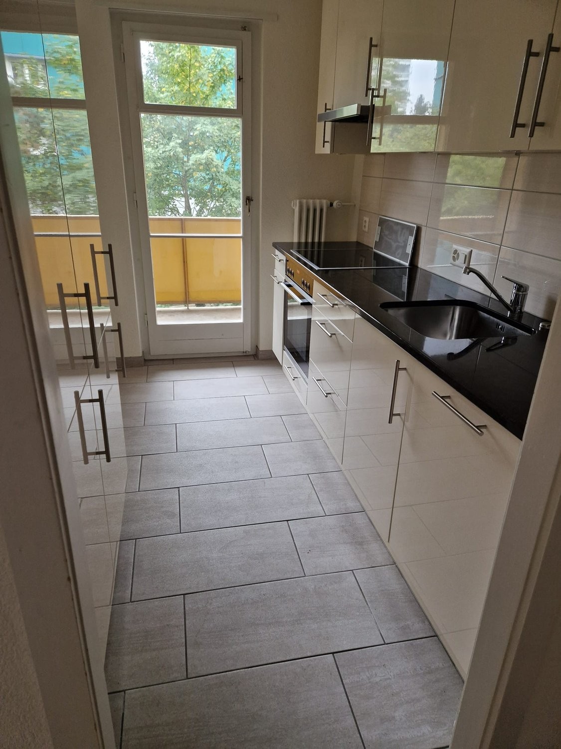 Praktische Küche mit grosser Kühl- und Gefrierschrank