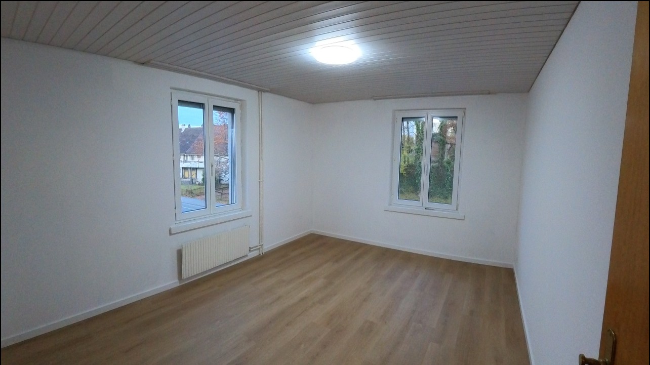 Diese charmante Wohnung bietet auf 90 Quadratmetern eine einladende und gemütliche Atmosphäre. Sie verfügt über 3.5 Zimmer und wurde erst kürzlich renoviert. Besonders hervorzuheben sind ihr einzigartiger Charme sowie die modernen Annehmlichkeiten wie ein Ankleidezimmer, Waschmaschine und Wäschetrockner. Zusätzlich stehen Ihnen ein Garagenparkplatz und ein Kellerabteil zur Verfügung. Die Miete beträgt 1550 CHF inkl. Nebenkosten.