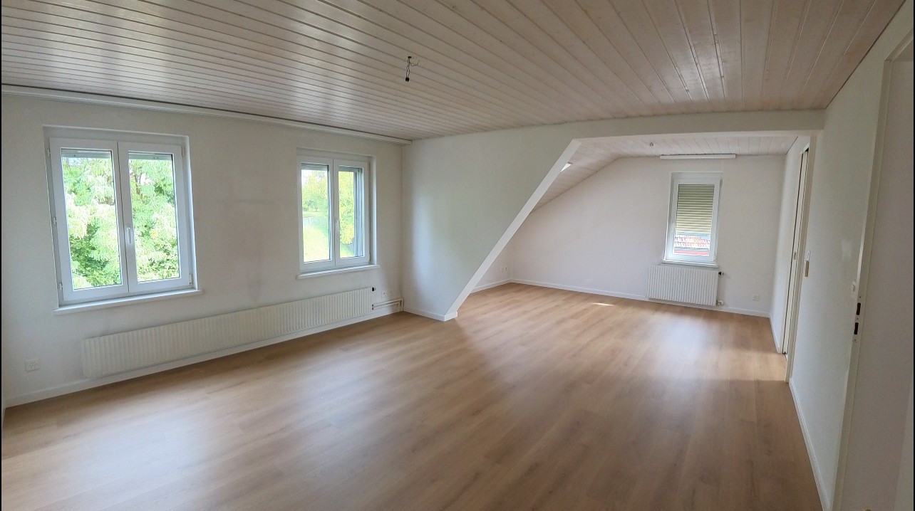 Diese charmante Dachgeschosswohnung im zweiten Obergeschoss eines im Jahr 1930 erbauten Gebäudes ist ab sofort verfügbar. Sie befindet sich in der Hauptstrasse 19, 8583 Sulgen und bietet auf 70 Quadratmetern eine gemütliche Atmosphäre. Die Wohnung verfügt über 3.5 Zimmer und wurde erst kürzlich im Jahr 2025 renoviert. Sie besticht durch ihren einzigartigen Charme und ihre modernen Annehmlichkeiten wie Geschirrspüler, Waschmaschine und Wäschetrockner. Zudem stehen Ihnen ein Aussenparkplatz und ein Keller zur Verfügung. Die Miete beträgt 1450 CHF inkl. Nebenkosten. Lassen Sie sich diese Gelegenheit nicht entgehen und ziehen Sie in eine Wohnung, die Tradition und Moderne perfekt vereint.