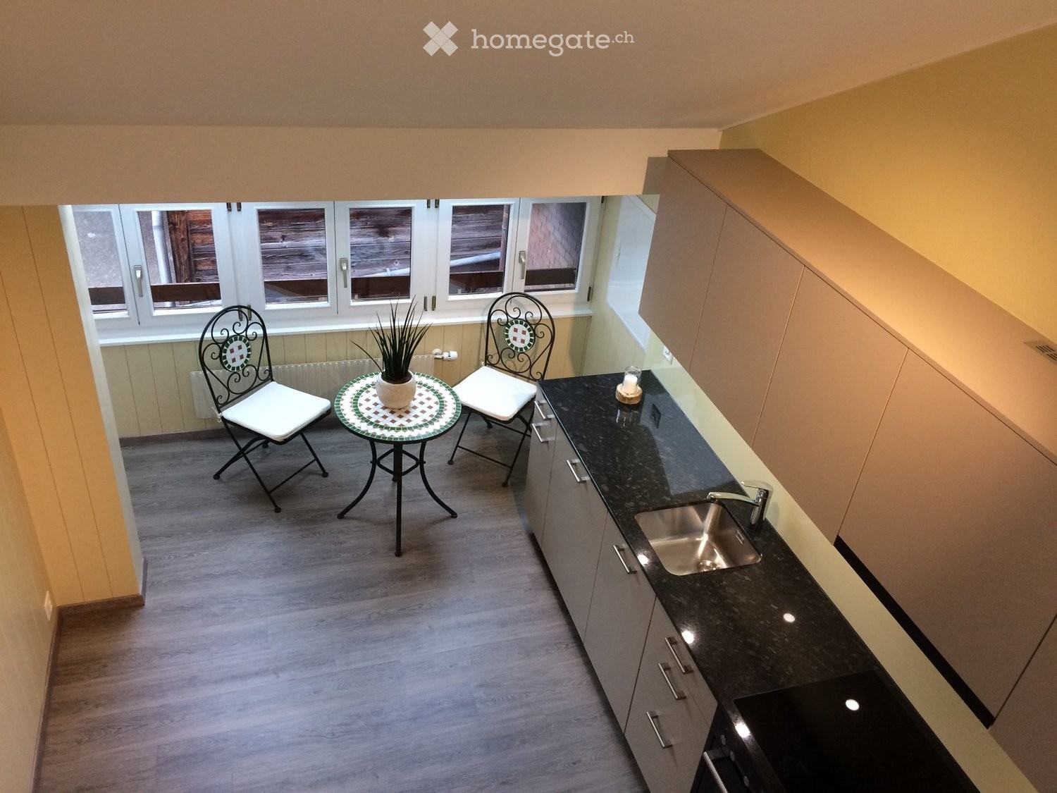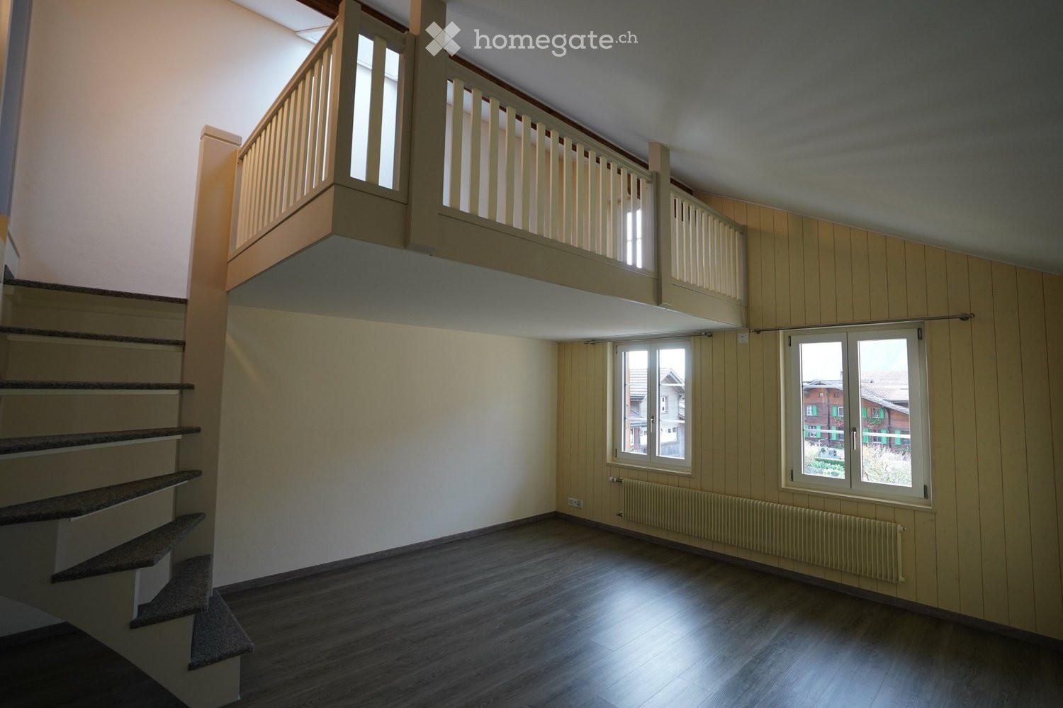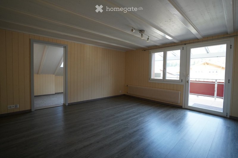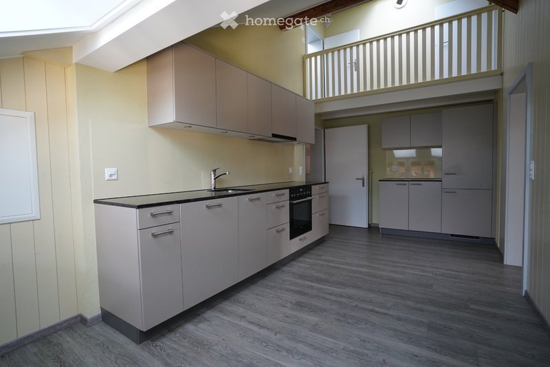 Die Wohnung bietet ein besonderes Wohnambiente mit hochwertigem, originellen Ausbau, einer offenen Galerie, Balkon und Veranda. Ein grosszügiger separater Estrich mit weiterem Abstellraum und Parkplatz sowie Benutzung Waschmaschine und Tumbler sind inklusive. Nichtraucherwohnung, keine Haustiere, ungeeignet für Familien. Bushaltestelle in unmittelbarer Nähe.