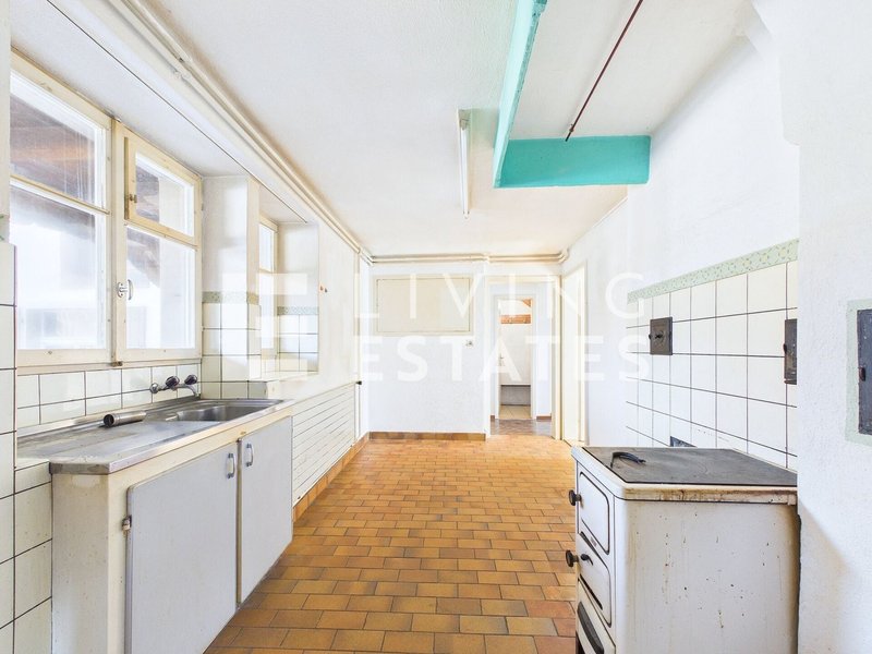 Dieses charaktervolle Ensemble in Sisseln vereint gewachsene Substanz, beeindruckendes Volumen und vielseitige Perspektiven unter einem Dach. Das Wohnhaus beherbergt zwei eigenständige Wohneinheiten - eine 3.5-Zimmer-Wohnung im Erdgeschoss sowie eine 4.5-Zimmer-Wohnung im Obergeschoss - und eröffnet damit flexible Nutzungsmöglichkeiten. Die klar strukturierte Raumaufteilung bildet eine solide Grundlage für eine zeitgemässe Erneuerung und individuelle Neugestaltung. Die angegliederte Scheune mit zwei Heuböden und zusätzlichem Dachraum schafft wertvolle Volumenreserven und erweitert das Nutzungsspektrum erheblich. In Verbindung mit der separaten Nebenscheune entsteht ein seltenes Gesamtangebot mit echtem Entwicklungspotenzial in der Dorfzone