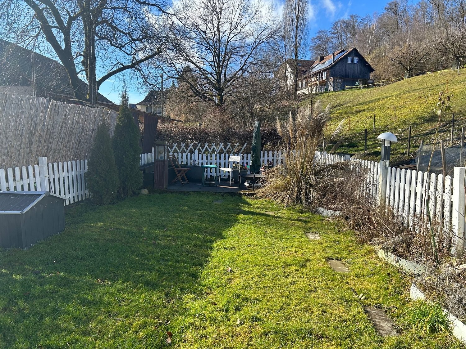 Ebenfalls im Mietpreis inbegriffen ist ein eigener Gartenteil. Dieser gepflegter Garten ist circa 45 m² gross und gehört ganz allein dir. Er ist eingezäunt, mit Beleuchtung + Sitzplatz.Gartenhäuschen vorhanden.Du darfst dich dort frei fühlen und nach deinem Gusto gestalten.