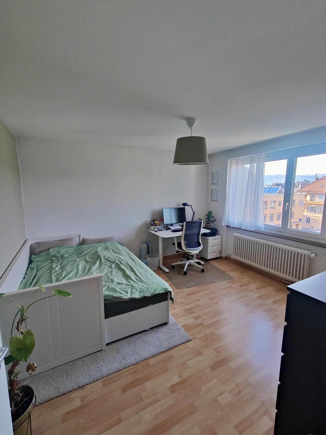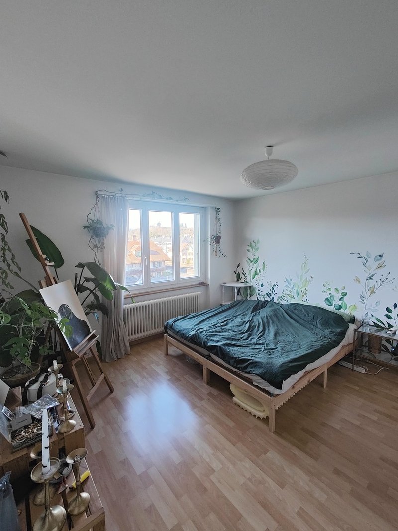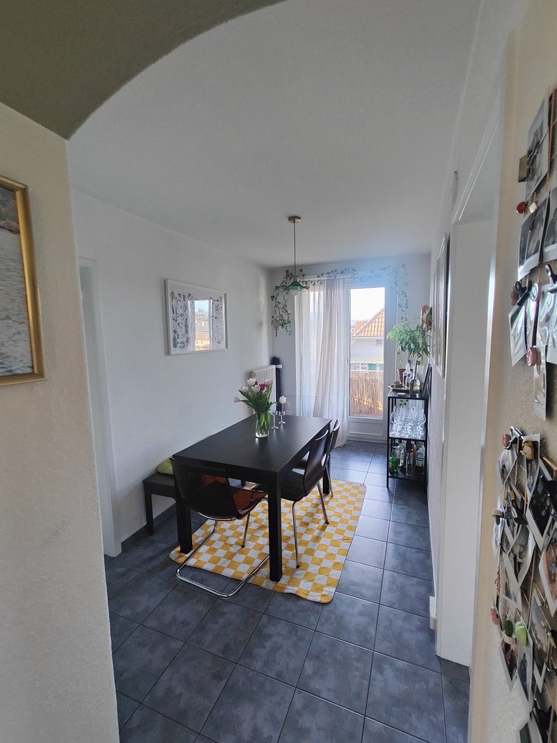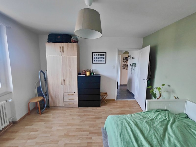 Die Wohnung bietet zwei grosse Schlafzimmer und eignet sich ideal für Paare oder eine WG. Besonders hervorzuheben sind die Abendsonne auf dem Balkon mit Jura-Blick sowie die Morgensonne in der Küche, die für einen angenehmen Start in den Tag sorgt.