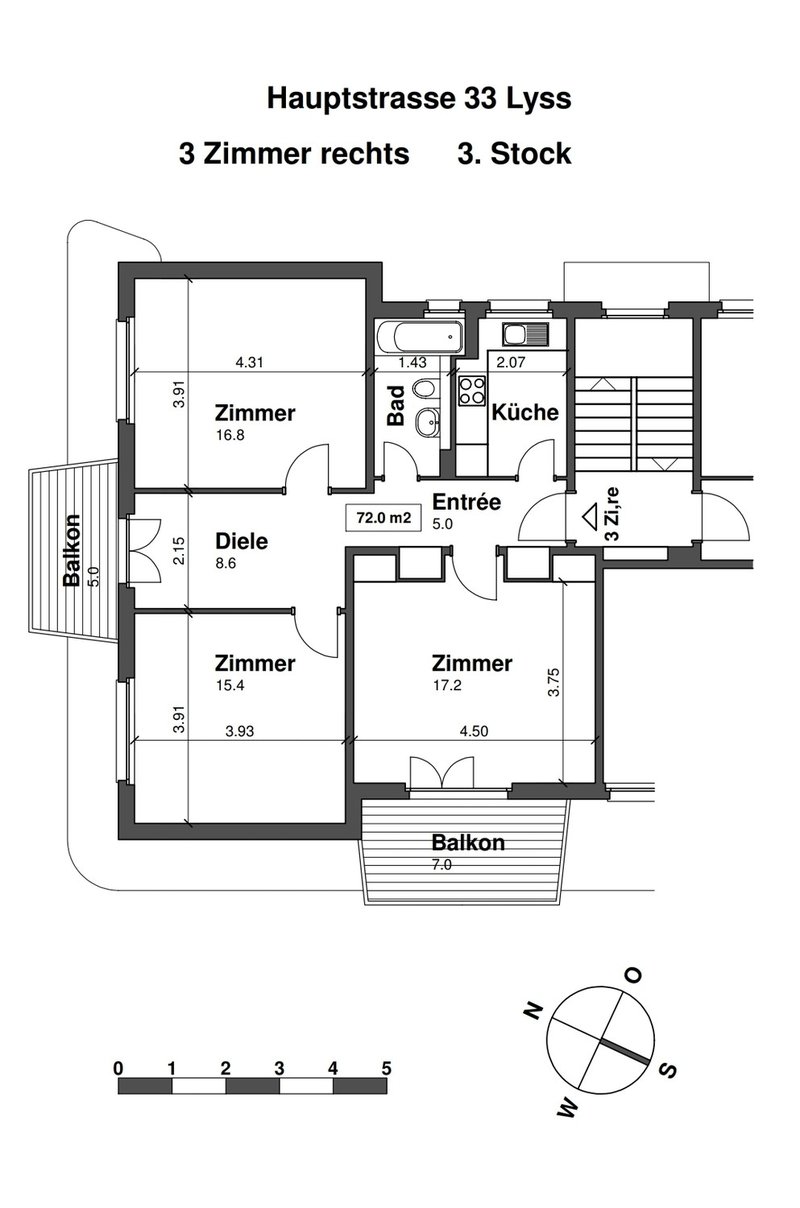 Diese lichtdurchflutete 3.5-Zimmer-Wohnung (72 m²) im 3. Obergeschoss überzeugt durch ihre zentrale Lage, durchdachte Raumaufteilung und zwei Balkone mit herrlicher Aussicht auf den Jura.