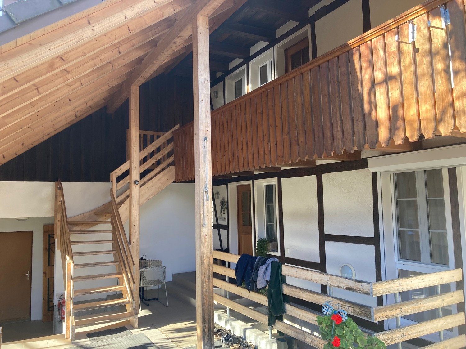 Lage und Umgebung: Die Wohnung befindet sich in ländlicher Gegend auf einem Bauernhof. Die Bushaltestelle ist nur 2 Gehminuten entfernt und bietet eine gute Anbindung.