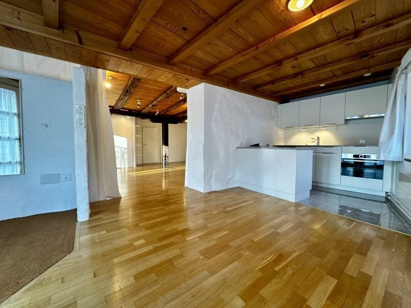 Gemütliche Loftwohnung-Wohnung mit eigener Sauna und Holzofen für gemütliche Stunden. Die Wohnung kann mit einem Vorhang / Raumtrenner in drei Räume unterteilt werden. Ein Autoabstellplatz kann extern gemietet werden.