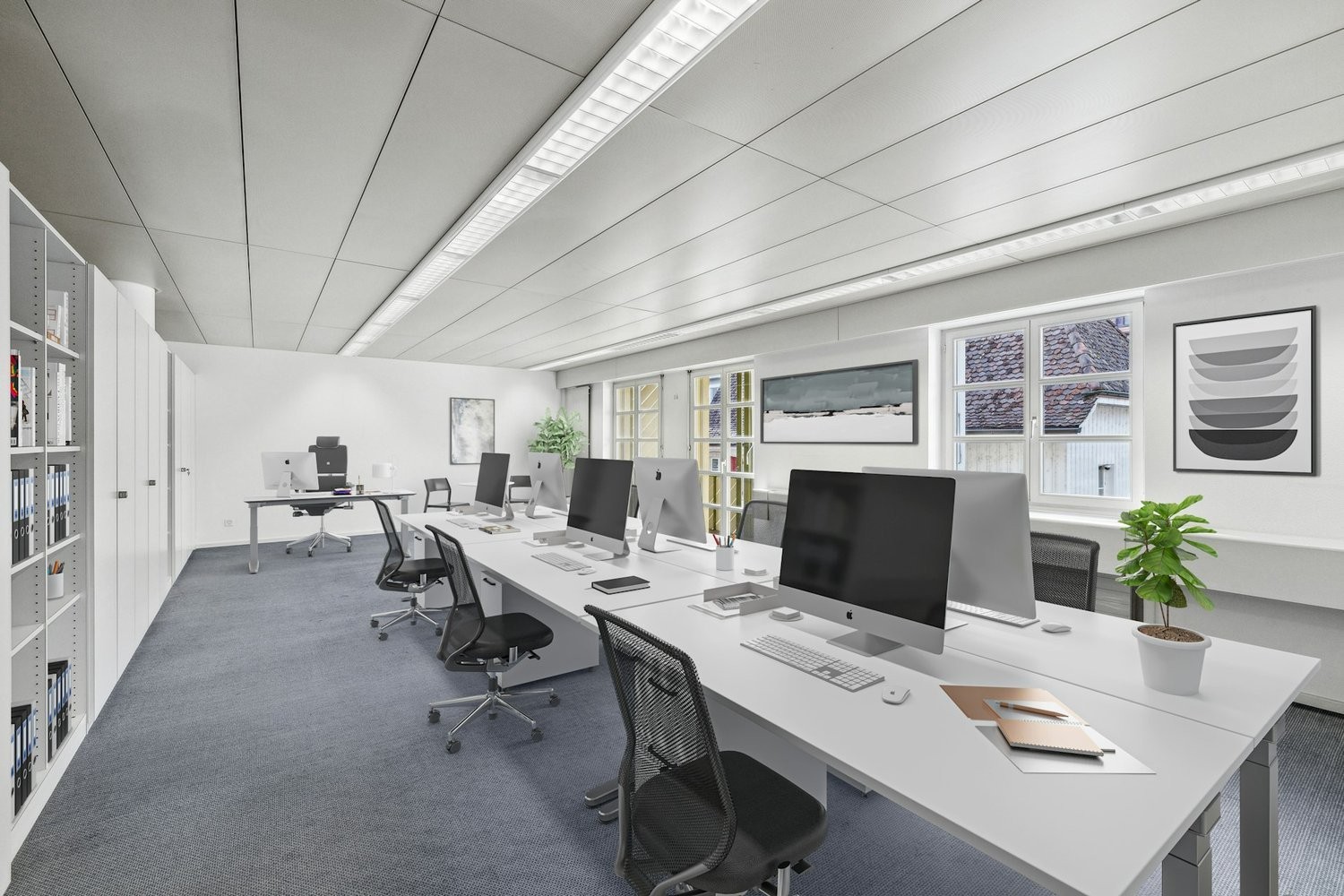 Im charmanten «Stedtli» von Laufen, direkt an der Hauptstrasse, vermieten wir eine attraktive ca. 475 m² grosse Bürofläche. Die Büroräume befinden sich in einer repräsentativen Liegenschaft in Mitten der Altstadt von Laufen und bieten ca. xx m² Fläche. Die Räumlichkeiten sind gut ausgebaut und geben Ihnen durch die Raumaufteilung viel Möglichkeiten Ihre Büros und Arbeitsplätze einzurichten. Die voll ausgebauten Flächen mit einer Teeküche und überdachten Balkonen runden das Paket ab.