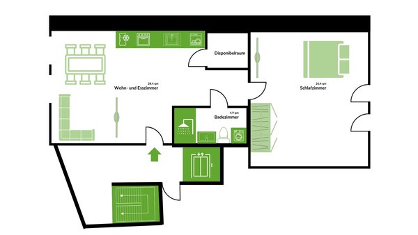 Hinweis: Die Wohnung ist nicht vollständig barrierefrei (2 Stufen vor dem Eingang).
