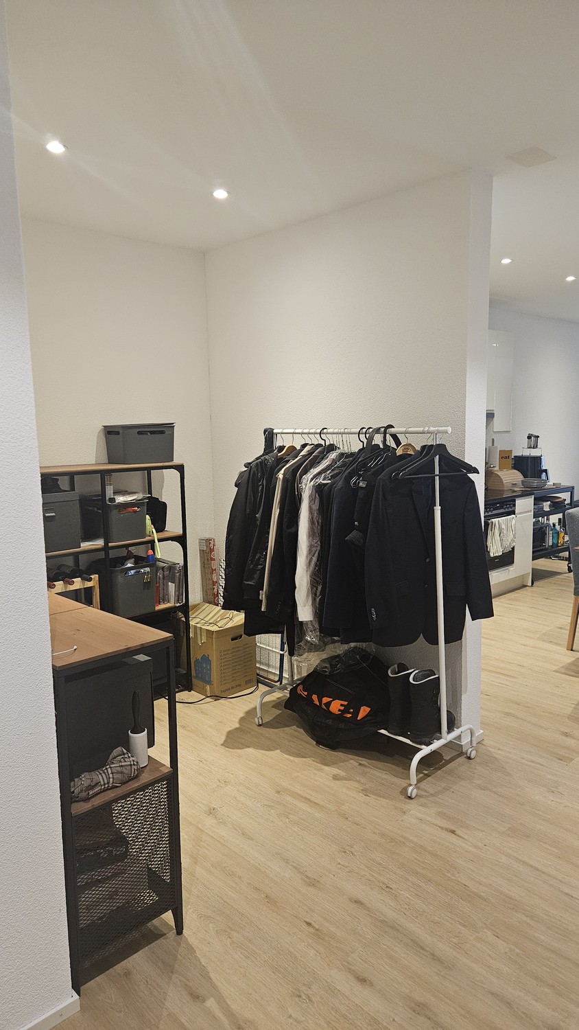 Die Niesche zwischen Bad und Küche ermöglicht einem einen etwas abgedeckten Stauraum einzurichten um die sonst sehr offene Wohnfläche nicht allzu voll wirken zu lassen.