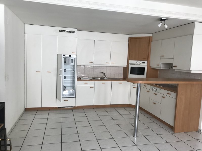 Schöne durchdachte Küche: Weisse Schränke, tolle Arbeitsplatte Glaskeramik etc. Ausgestattet mit Geschirrspüler und Kühlschrank.