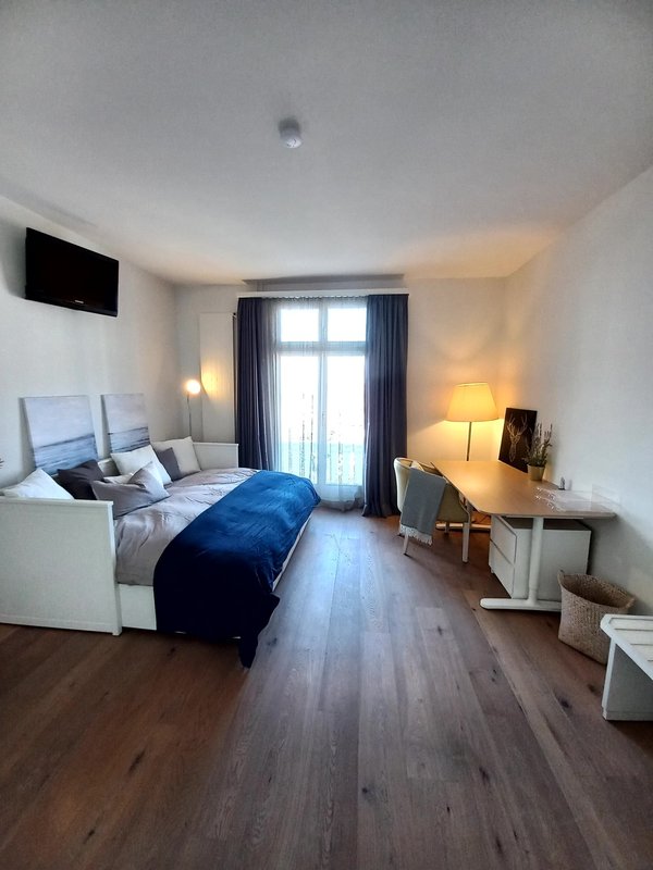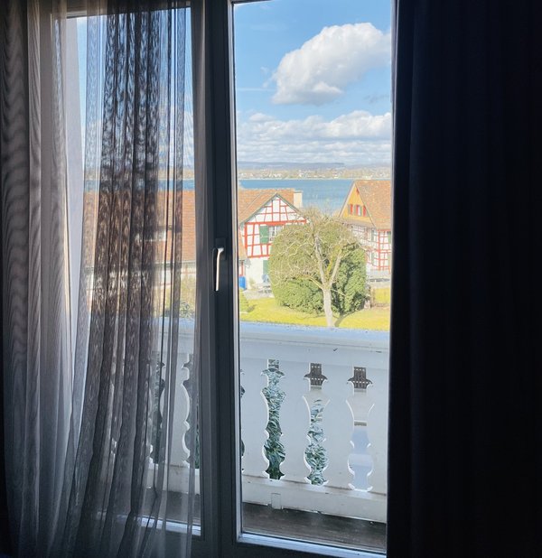 Freuen Sie sich über dieses schöne Zimmer in dem ehemaligen Boutique-Hotel Ermatingerhof, das mit kostenlosem WLAN und vielen weiteren Annehmlichkeiten ausgestattet ist und mit viel Liebe zum Detail mit Möbel ausgestattet wurde. Das schöne, möblierte Zimmer mit Blick auf den Bodensee verfügt über ein grosses, separates Bad mit Badewanne.