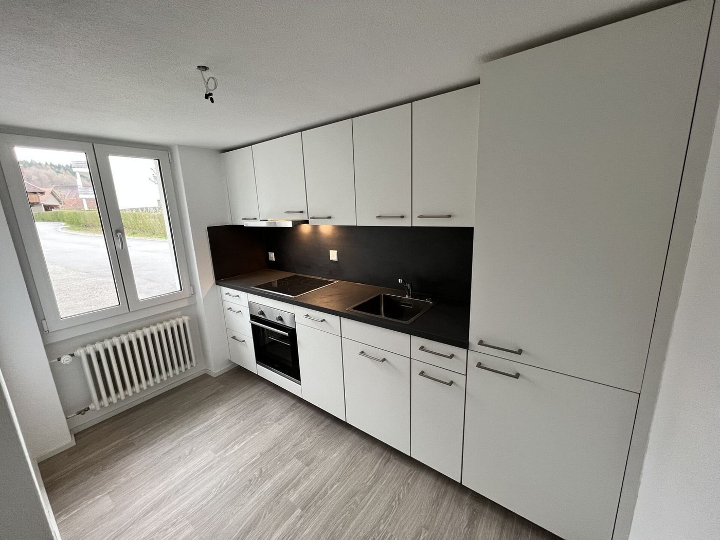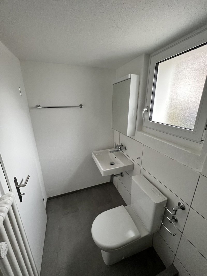 Die 1,5-Zimmer-Wohnung ist in der ganzen Wohnung mit qualitativen Vinylböden ausgestattet. Die Wohnküche lässt keine Wünsche offen, da Sie über einen grossen Kühlschrank inkl. Gefrierfach verfügt und genügend Stauraum vorhanden ist. In der Nasszelle sind die Wandplatten und Apparate geschmackvoll in Weiss getaucht und der Boden in einem angenehmen Dunkelgrau bestückt. Die Badezimmer verfügen über ein Lavabo, einen Spiegelschrank, ein WC und eine Dusche. Die Wohnung ist strahlend hell und hat eine gute Aufteilung. Das dazugehörende Kellerabteil befindet sich im UG des Gebäudes. Der allgemeine Waschraum ist im Erdgeschoss des Gebäudes und verfügt über 3 Waschmaschinen und 3 Trockner.