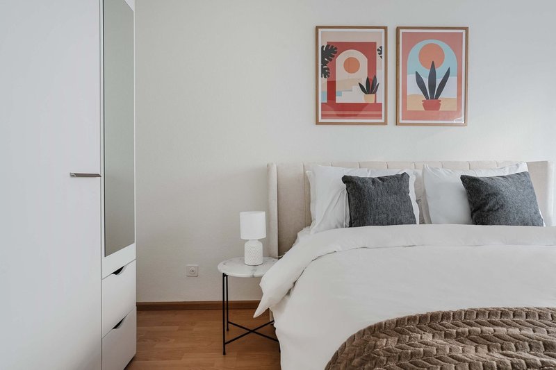 Durchdachtes Design mit maßgeschneiderten Oberflächen und moderner Einrichtung, und eine voll ausgestattete Küche, Sie werden das „Ich bin zu Hause“-Gefühl mit diesem Blueground Wohnung genießen. Egal, ob Sie in Ihrem Gemütlich Wohnzimmer die neuesten und besten Unterhaltungssendungen über den Smart-TV oder den kabellosen Premium-Lautsprecher streamen oder sich auf der hochwertigen Matratze ausruhen – Sie werden sich in alles verlieben, was dieses Basel-Iselin Wohnung zu bieten hat.