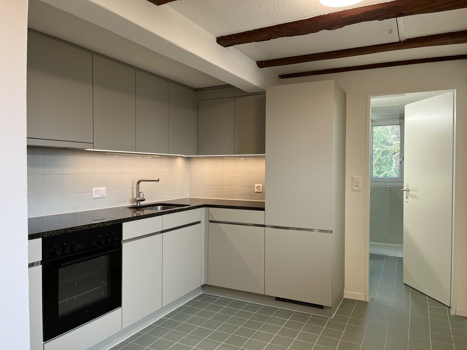 Das Bad verfügt über Tageslicht mit Fenster und einem grossen Handtuchwärmer. Die Küche hat einen Geschirrspüler, ein Ceranfeld, ein Kühlschrank mit separatem Tiefkühler und einen Backofen. Im Gang wurde eine Garderobe und ein Putzschrank integriert. Beide Zimmer haben einen geölten Perkettboden.