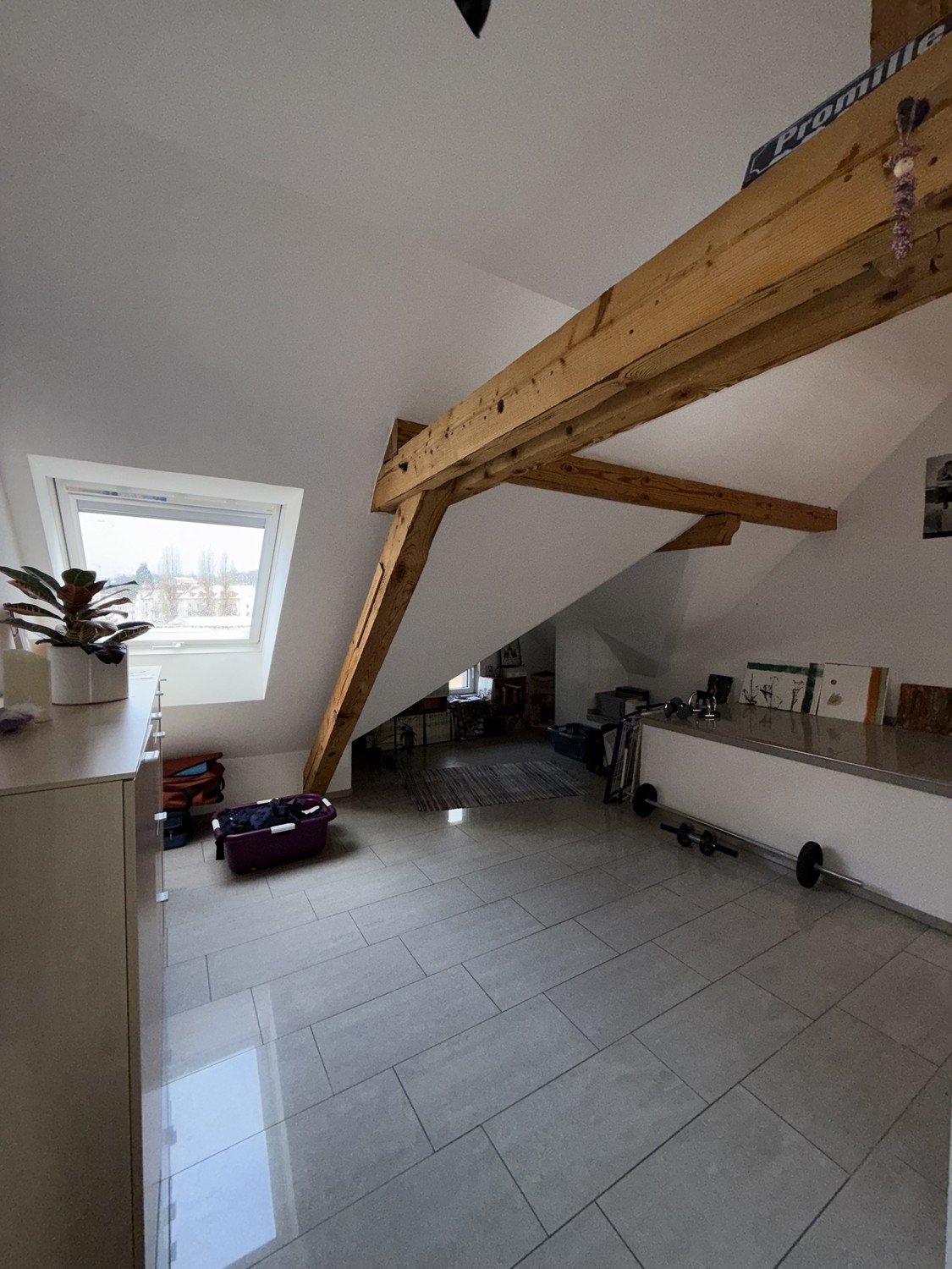 Im oberen Geschoss befinden sich zwei Räume sowie ein zusätzliches Büro/Atelier, ideal für Homeoffice oder als Rückzugsraum.
