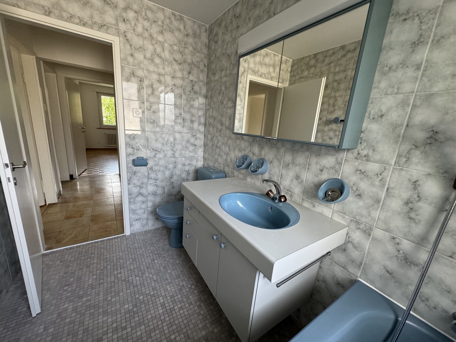 Die Wohnung befindet sich an ruhiger Lage auf dem Bruderholz. Tramhaltestelle, Einkaufsmöglichkeiten und Kinderspielplatz befinden sich in der Nähe.