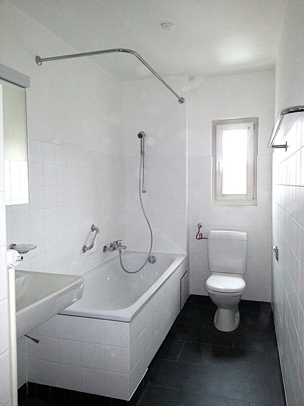 - Bad mit Badewanne, Lavabo, WC und Fensnter