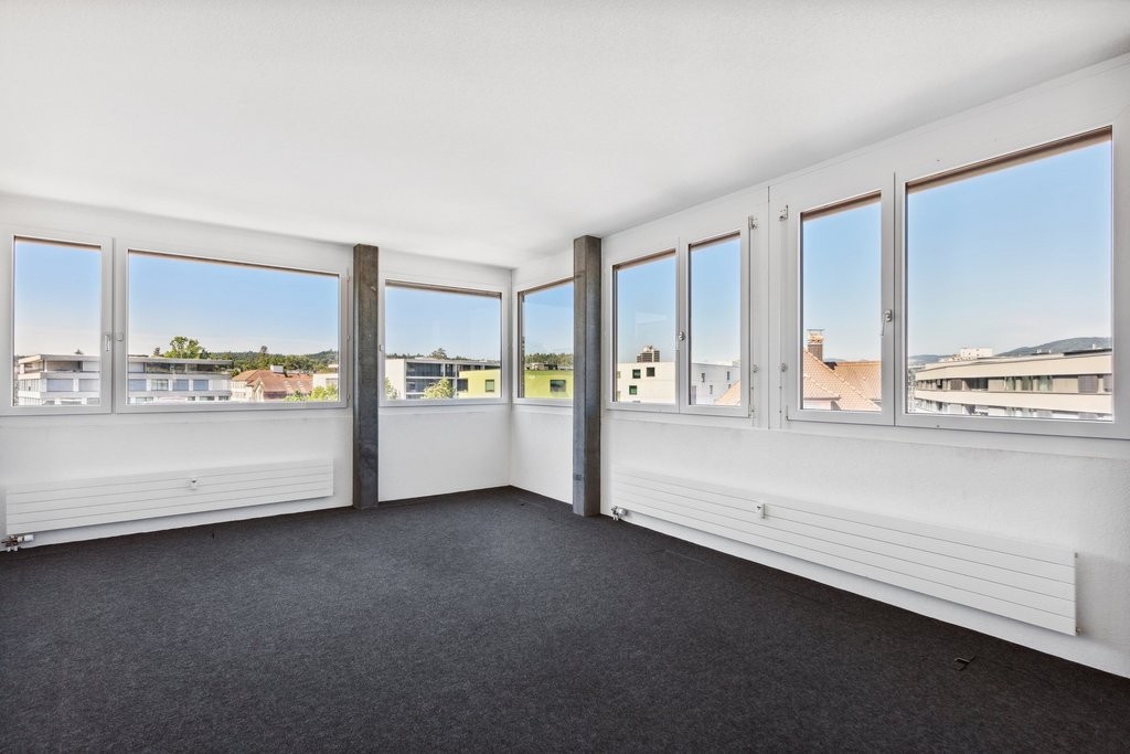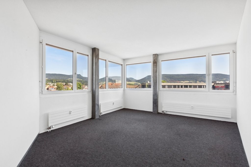 Diese Mietfläche bietet Weitblick auf 155 m2: Die 6 Einzelbüros an der Herzogstrasse 1 beim Gais-Kreisel in Aarau warten auf neue Mieterschaft. Sie sind per 1. April 2026 bezugsbereit.