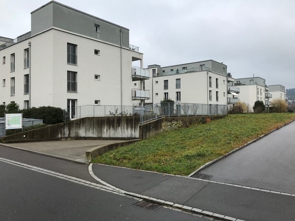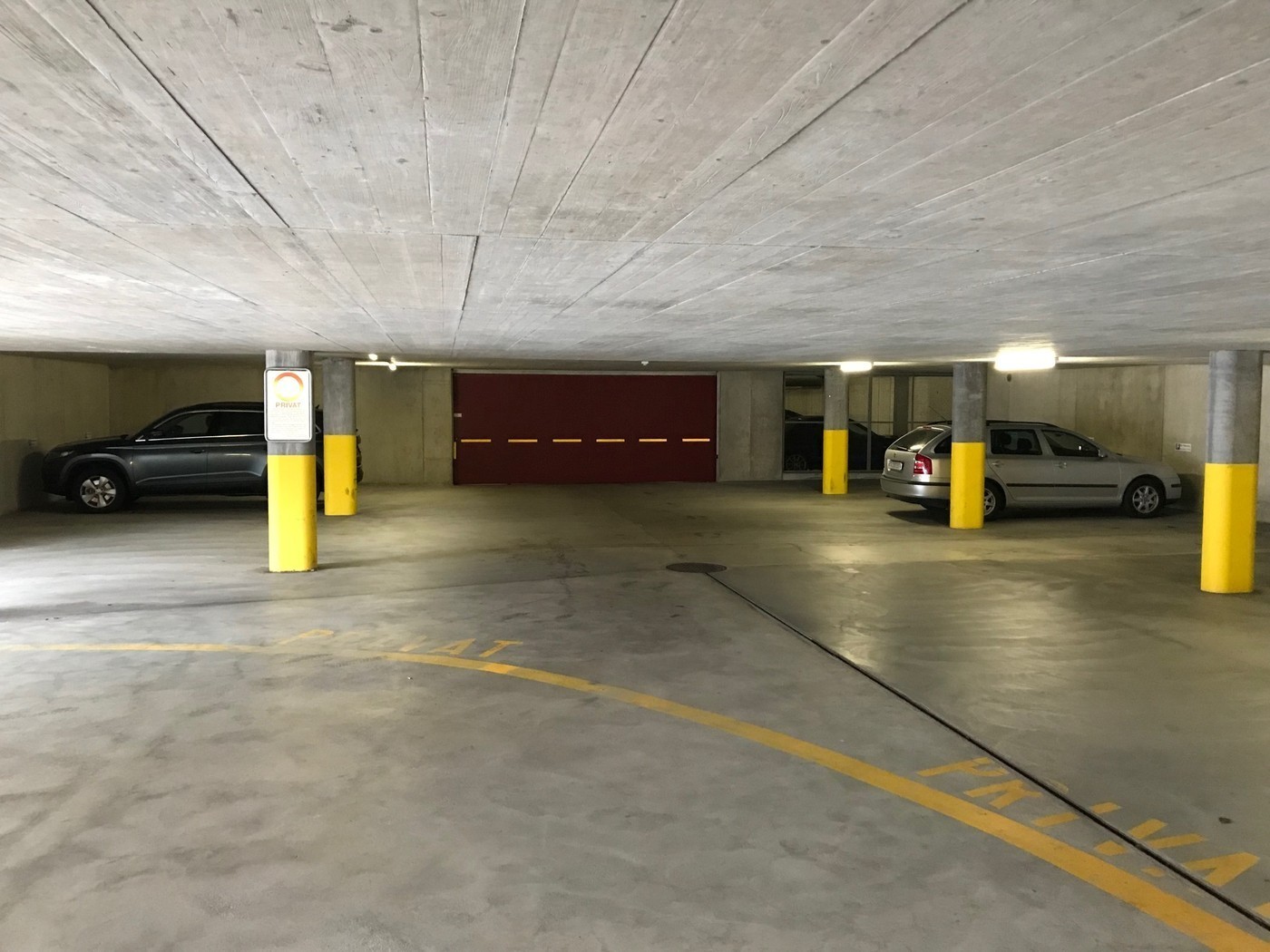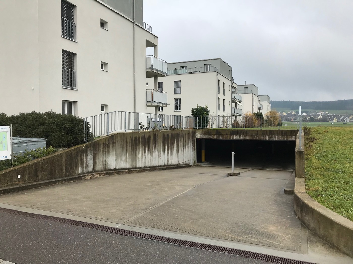 Breiter (E) Parkplatz in ruhiger Einstellhalle mit Besucherparkplätzen und Vorplatz