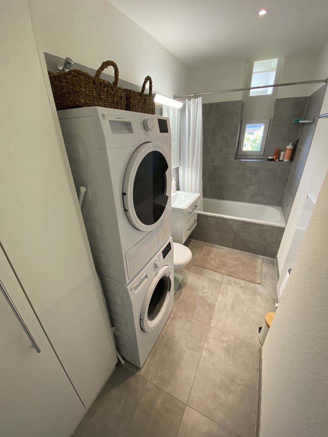 - Moderni Chuchi und moderns Bad mit Wöschturm (Wöschmaschine und Tumbler) und Badwanne
