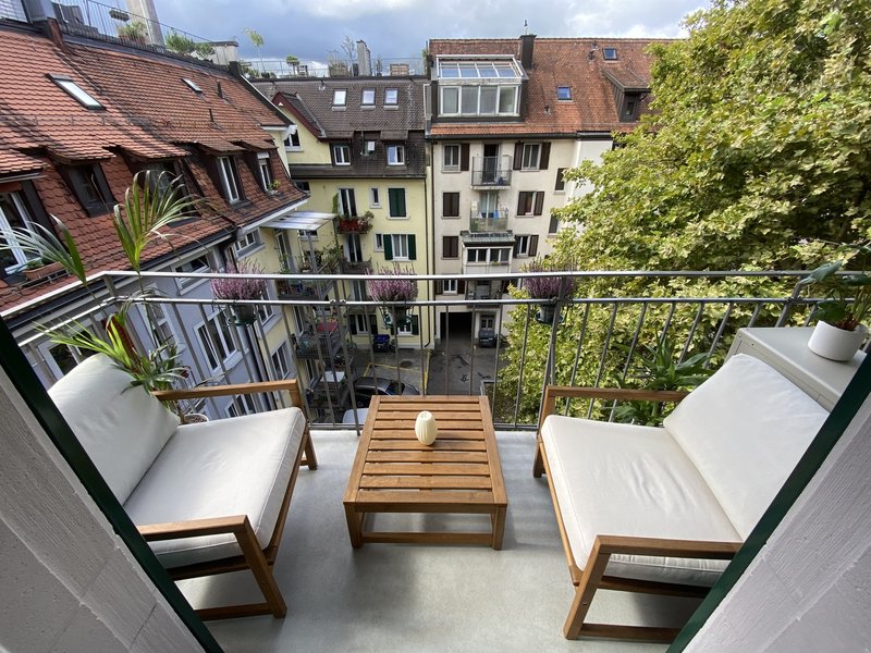 - Lange, sunnige Balkon mit gmüetliche Sessel