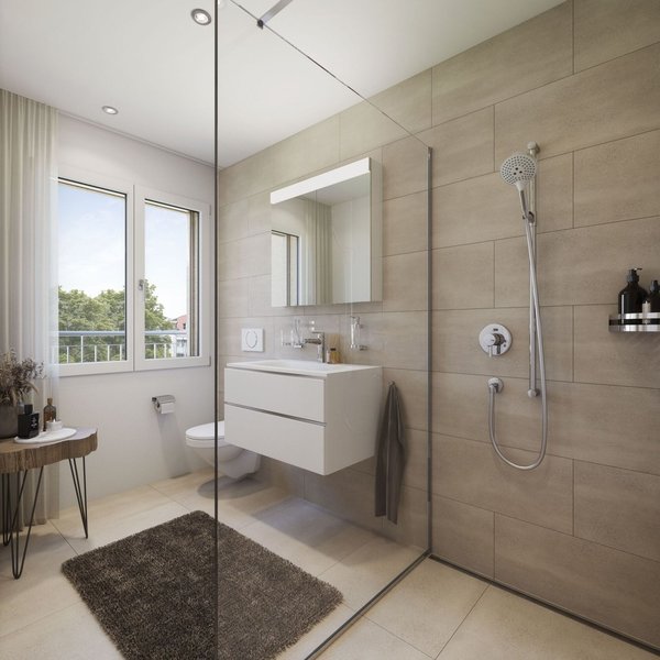 Die Wärmeaufbereitung mit einer Luft-Wasser-Wärmepumpe und die Bodenheizung sorgen nicht nur für ein angenehmes Raumklima. Beide geben Ihnen ein gutes Gefühl, denn Sie wissen, dass hier vorbildlich mit den natürlichen Ressourcen umgegangen wird. Den Strom zur Wärmeaufbereitung und alle anderen Verbraucher liefert die eigene Photovoltaikanlage - direkt vom eigenen Dach. Beide Liegenschaften verfügen über gedeckte Veloabstellplätze und teilen sich eine Einstellhalle. Im UG finden Sie auch Ihren privaten Keller und die private Waschküche. Praktisch zudem, dass jedes Haus einen eigenen Lift besitzt.