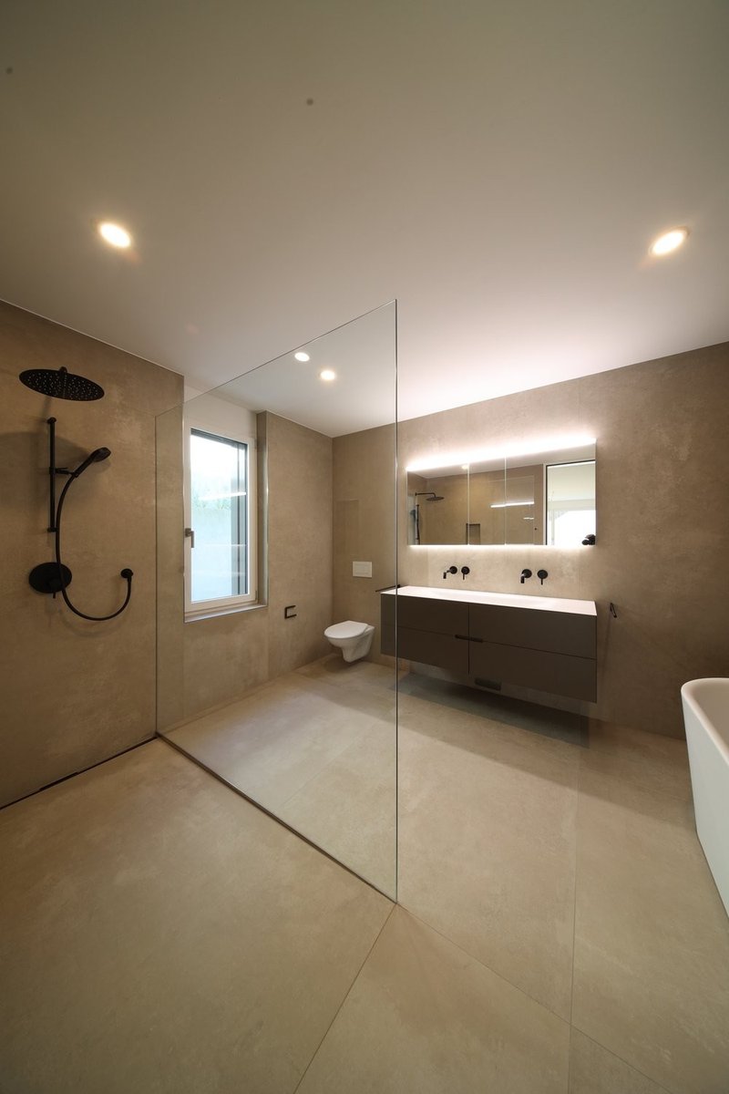 Sicher ist: Der weitläufige Wohn- und Essbereich bildet das Herzstück. Grosszügige Fensterfronten lassen viel Licht herein und holen die Landschaft buchstäblich ins Innere. Die offen gestaltete Küche mit Kochinsel lädt zu genussvollen Momenten ein, während das Speicher-Cheminée für eine warme, behagliche Atmosphäre sorgt. Mehrere helle Zimmer mit direktem Zugang ins Grüne bieten Ihnen jede Menge Nutzungsmöglichkeiten. Zwei Nasszellen, darunter ein privater En-suite-Bereich, überzeugen mit Komfort und Eleganz. Ein separates WC ist eine praktische Ergänzung. Apropos «praktisch»: Ein Lift bringt Sie bequem vom Eingangsgeschoss direkt auf Ihre Ebene. Stauraum und durchdachte Nebenflächen fügen sich unaufgeregt ins Gesamtkonzept ein.