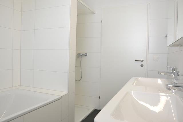 - Badezimmer mit WC, Lavabo, Spiegelschrank und Dusche