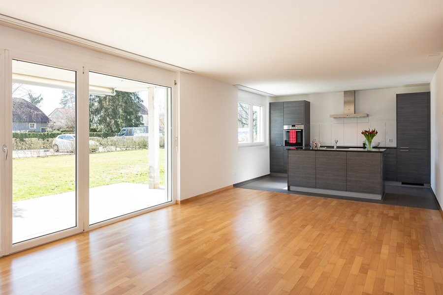 - Offene moderne Küche mit Geschirrspüler und Glaskeramikherd - Ganze Wohnung Parkett (ausser Küche sowie Nasszellen) - Grosses Badezimmer mit Dusche und Badewanne - Abstellraum - Grosse Wandkästen im Korridor - Grosser gedeckter Sitzplatz - Parkmöglichkeiten zumietbar CHF 120.00/Mt. - Kinderfeundliche Lage