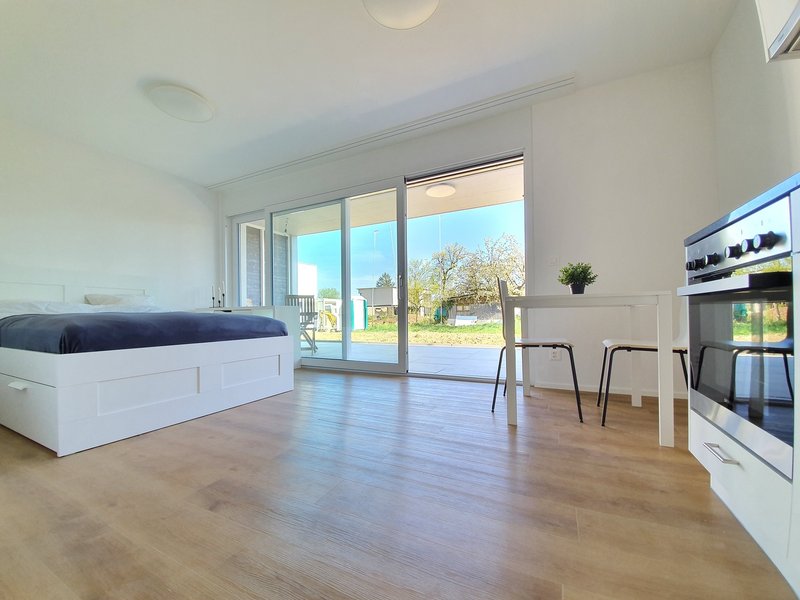 Objektart Terrassenwohnung Zimmer 1.5 Miete / Monat CHF 1’040 Nebenkosten CHF 50 Miete exkl. NK CHF 990 Abstellplatz CHF 100 Wohnfläche 40 m² Baujahr 2019 Zustand Neubau Verfügbar ab 1. Mai 2026