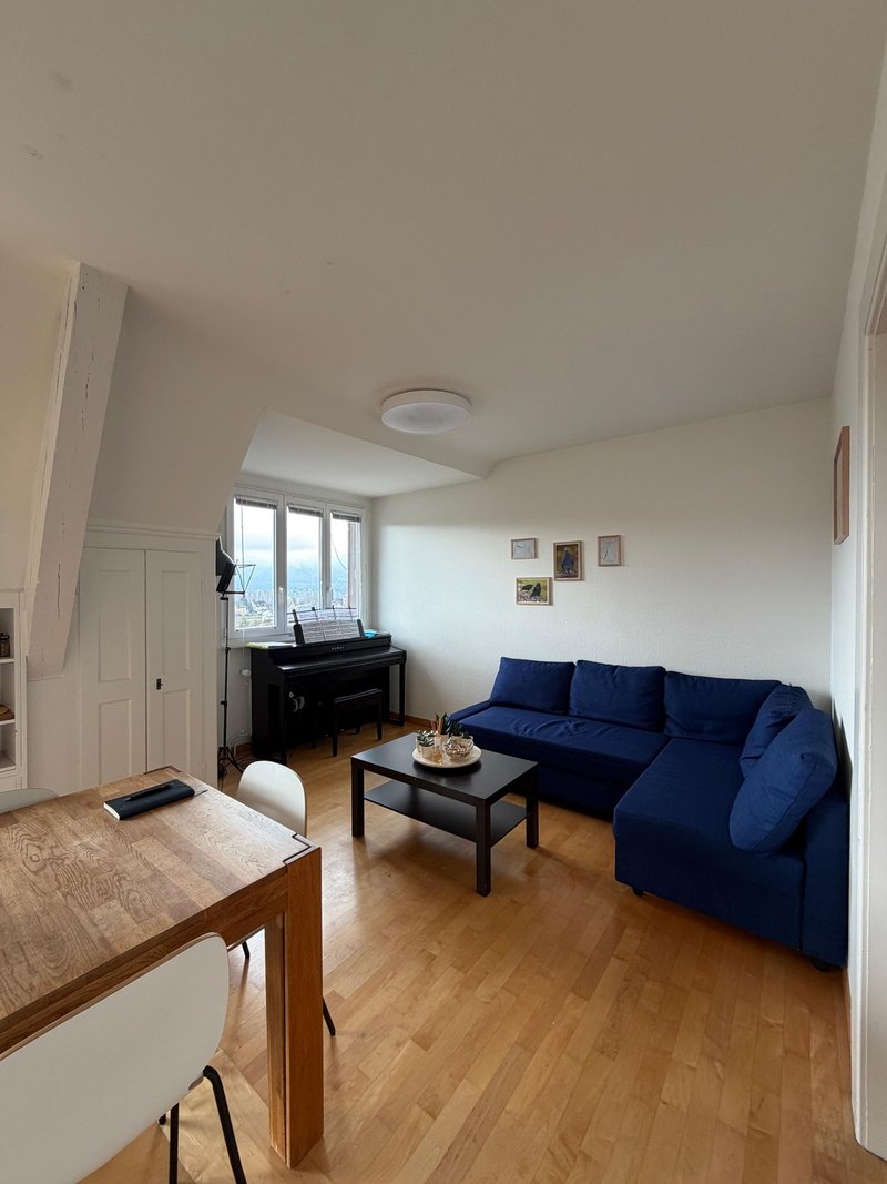 Our apartment (200 sqm), in the hearth of Hirslanden (Zurich), offers a spacious living room, bright with natural light, and two balconies with breathtaking views. It includes a fully equipped kitchen with a dishwasher, and a laundry with a washing machine and a tumbler. The flat features two bathrooms and a guest room. A parking spot is also available for rent.