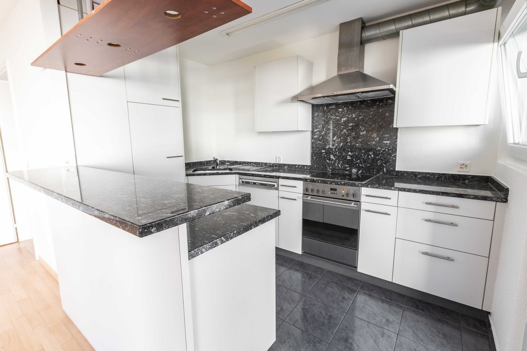 - Küche und Nasszelle mit pflegeleichtem, dunklem Plattenboden