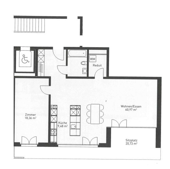- Wohn-/Esszimmer mit Zugang zum Sitzplatz