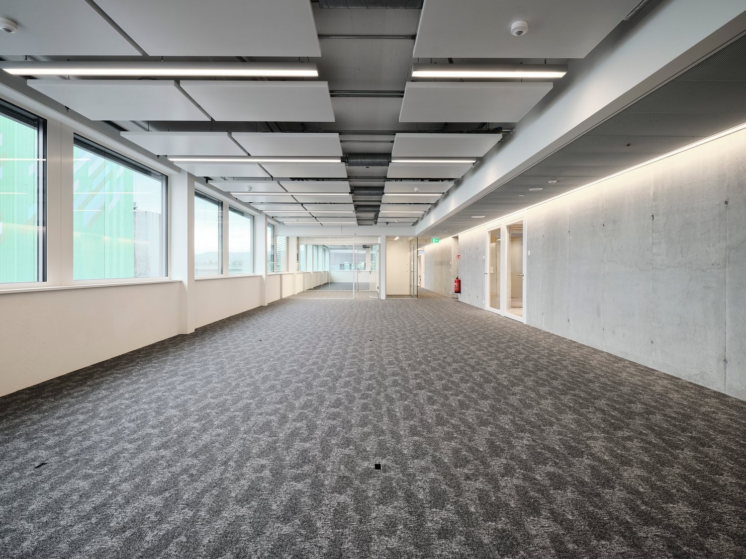 Hohe Ausbauqualität : Moderne Haustechnik (Lüftung, Kühlung, Akustik, Heizung & elektrische Storen), WC-Anlagen, Tageslicht über durchgehendes Fensterband
