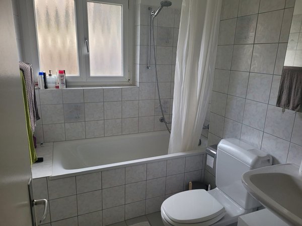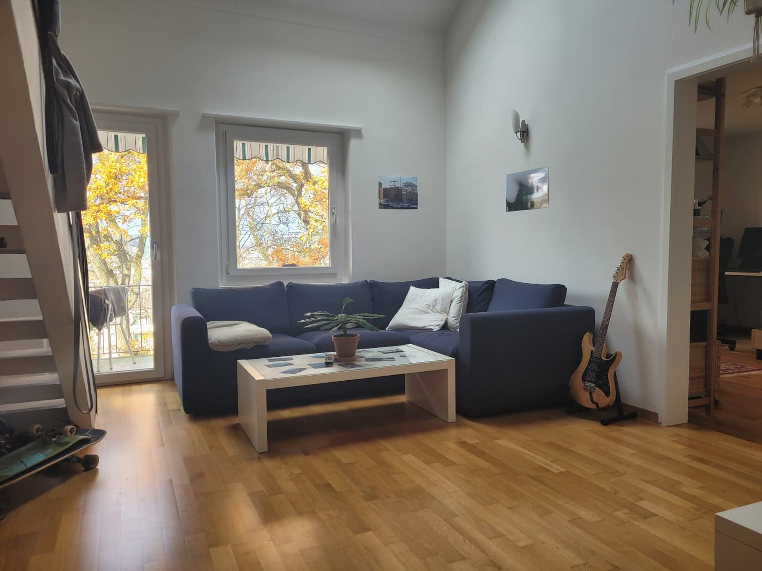 Dein Zimmer liegt in der unteren Etage unserer Maisonette-Wohnung nahe am Bireggwald. Es hat etwa 16 Quadratmeter (siehe Bilder).