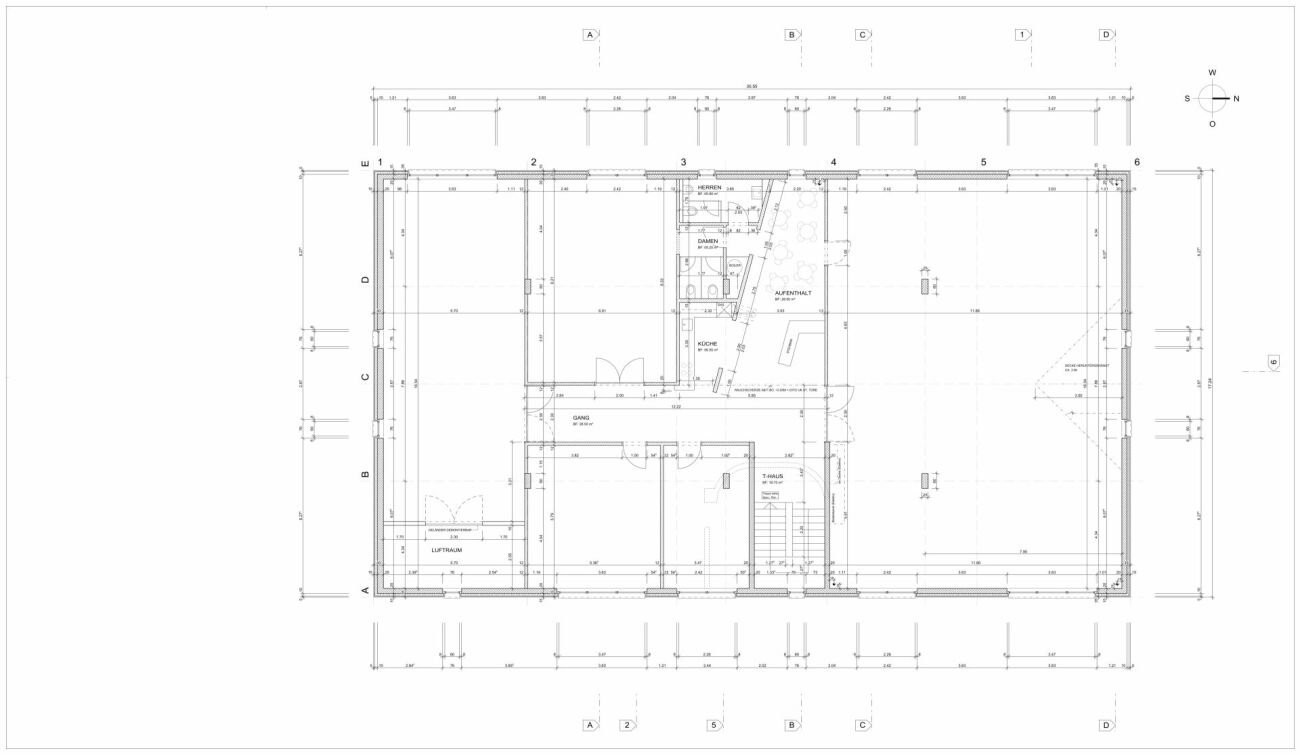 Die Räumlichkeiten im Obergeschoss umfassen eine Fläche von 290 m² und bestehen aus zwei klimatisierten Räumen. Zudem befinden sich Toiletten und Duschen im Obergeschoss, während eine Küche im Aufenthaltsraum untergebracht ist.