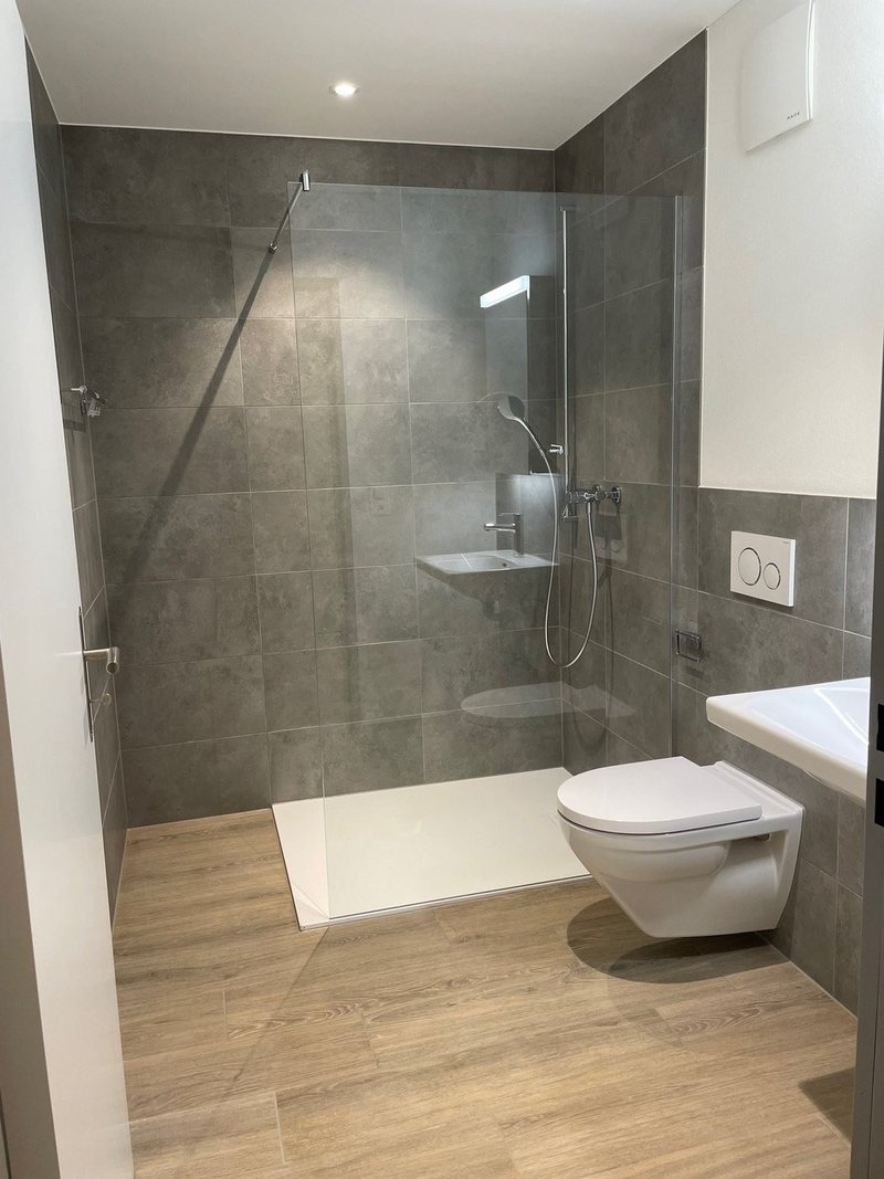 • Badezimmer mit Dusche, WC, Lavabo