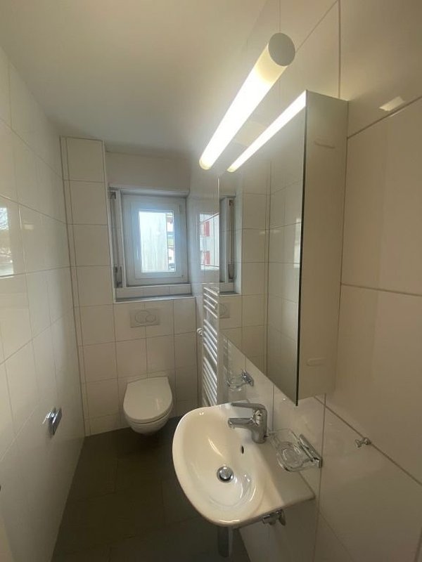 - in der Wohnung befinden sich zwei Nasszellen: ein Badezimmer mit Badewanne, ein separates WC mit Lavabo