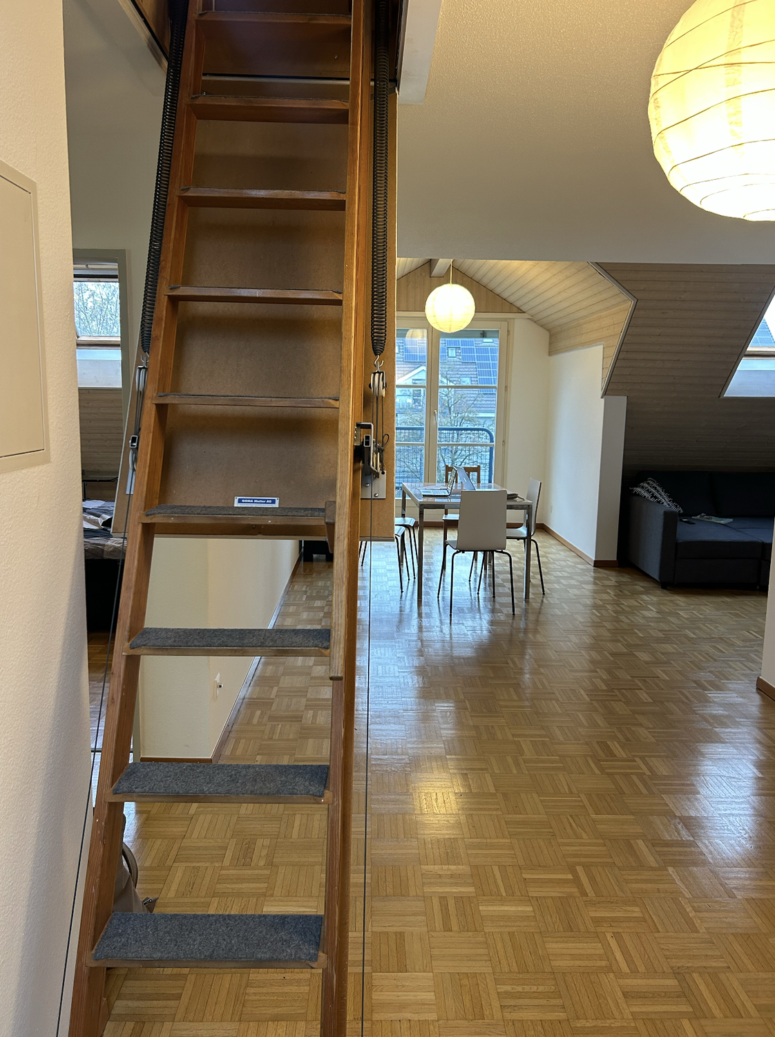 Diese besondere Wohnung überzeugt durch ihren grosszügigen Grundriss, viel Charme und eine warme Atmosphäre. Das Highlight ist der offene Wohnbereich mit funktionierendem Cheminée – perfekt für gemütliche Abende.