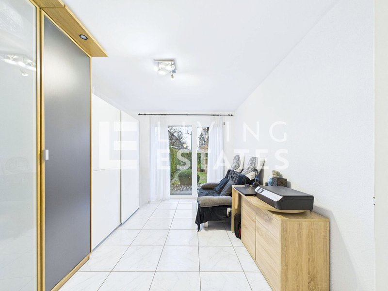 Diese äusserst gepflegte Wohnung empfängt Sie mit einem komfortablen Eingangsbereich und einem topmodernen Gästebad. Der grosszügige Flur führt Sie an zwei hellen Kinder- oder Arbeitszimmern mit Gartenzugang, den Reduits, dem grossen Badezimmer und dem Elternschlafzimmer, ebenfalls mit Gartenzugang, direkt in den offenen Wohn- und Essbereich. Hier erwarten Sie eine grosse, sehr gepflegte Küche und viel Raum für Ihre Wohn- und Gestaltungsideen - verwirklichen Sie sich hier Ihre eigene Wohlfühloase.