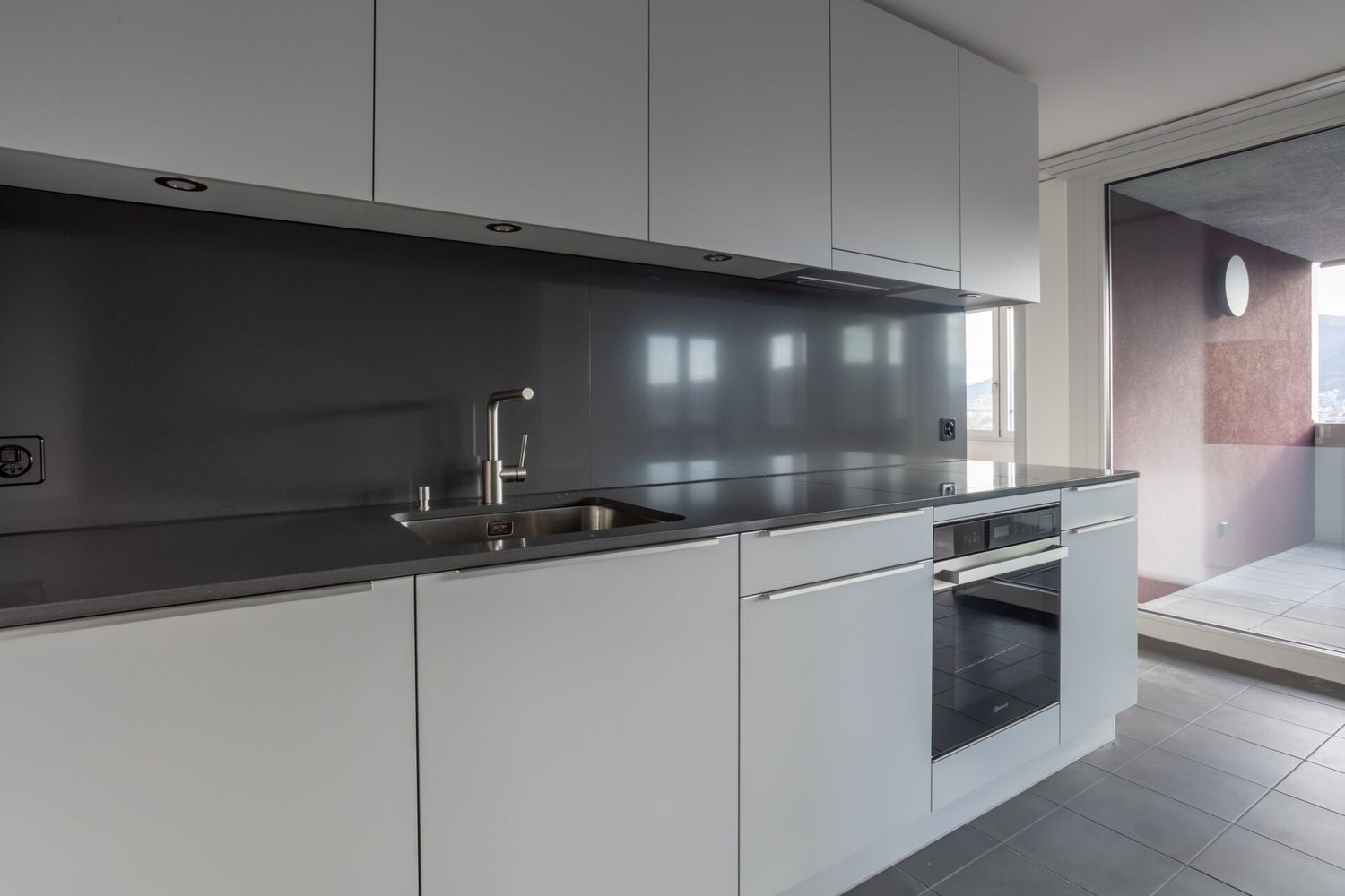 • Plattenboden im Entree-, Küchen- und Nasszellenbereich