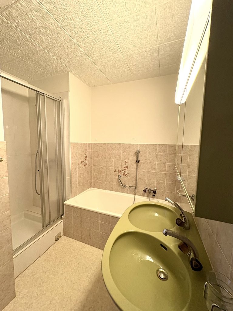 - Badezimmer mit Badewanne, Dusche, WC, Lavabo und Spiegelschrank