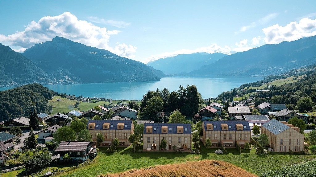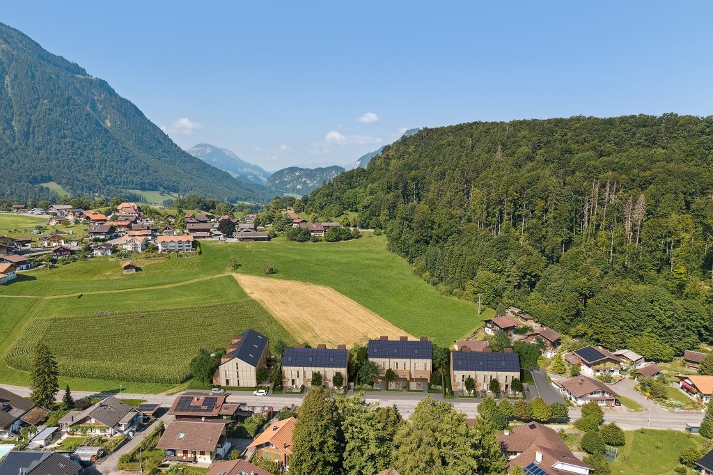 Am sonnigen Hang bei Spiez entsteht ein attraktives Neubauprojekt mit modernen Reihen- und Eckhäusern, das ruhiges Wohnen in naturnaher Umgebung mit perfekter Anbindung kombiniert.
