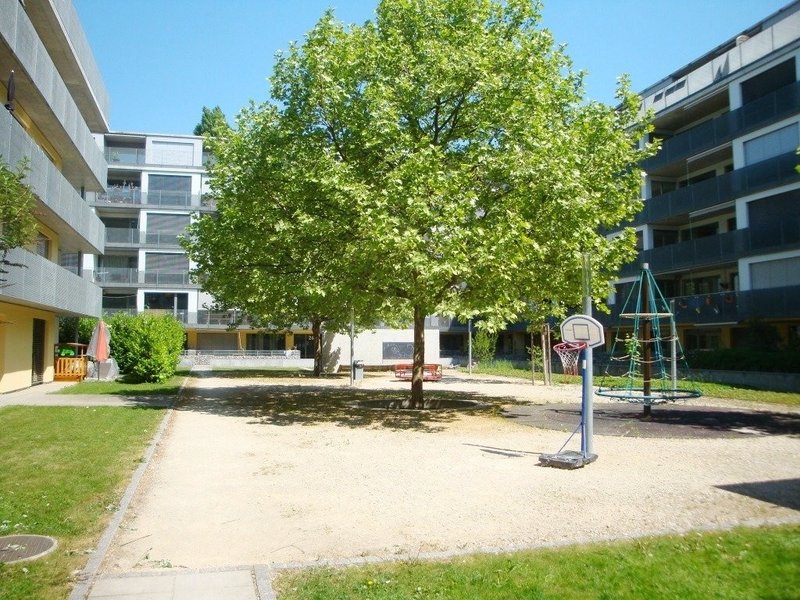 Ein Kellerabteil gehört zur Wohnung dazu. Lift, gedeckte Velounterstände und Spielplatz vorhanden.