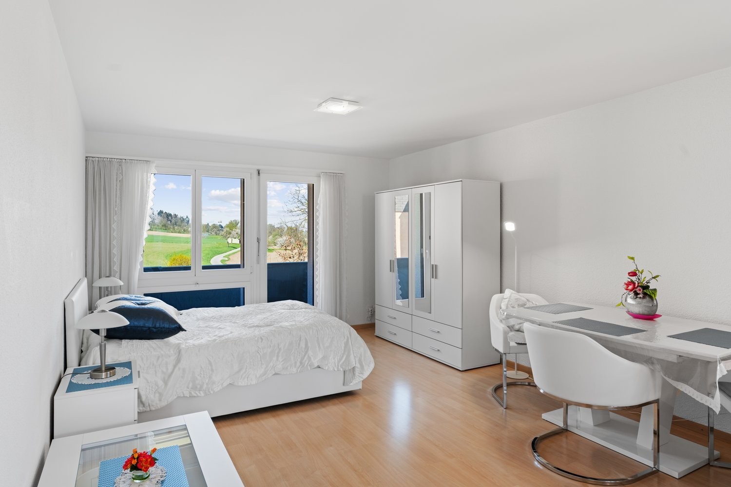 Helles Wohnzimmer/Schlafbereich mit: