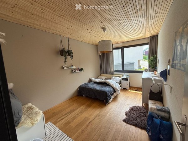 Im Obergeschoss befindet sich neben dem Bad mit Regendusche/Badewanne und zwei Lavabos noch 3 grosse Schlafzimmer. Eines davon mit Ankleide. Die Zimmer sind sehr hell und dürfen gerne eine Raumfarbe haben.
