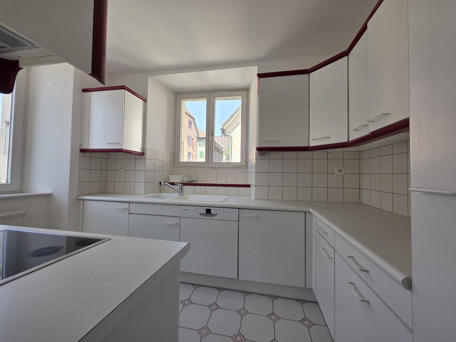 JOLI LOGEMENT SPACIEUX ET LUMINEUX A PROXIMITE DE TOUTES COMMODITES Cuisine agencée ouverte (cuisinière vitrocéramique, four, frigo, lave-vaisselle, hotte de ventilation) séjour avec carrelage, salle de bains-WC, WC séparés, hall avec carrelage, 3 chambres avec parquet et dont une avec armoires, balcon , dépendances.