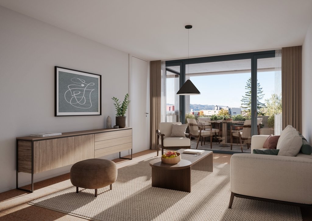Entdecken Sie die modernen und komfortablen Wohnungen in der Hoschti. Die Wohnungen im Minergie-Standard ermöglichen ein harmonisches Miteinander von Menschen jeden Alters.