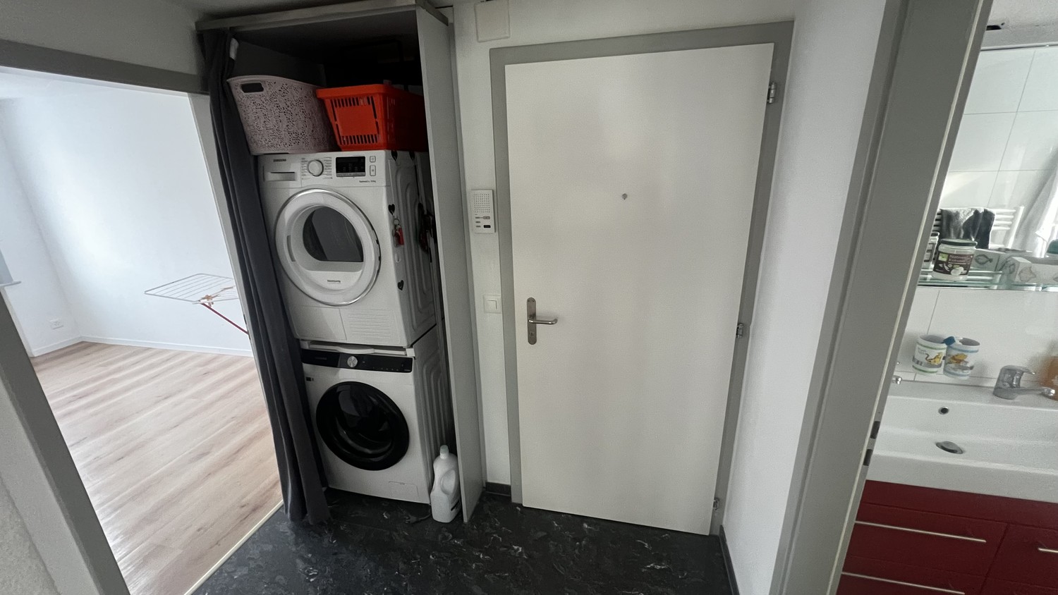 Es besteht die Möglichkeit, eine eigene Waschmaschine und Tumbler im Reduit zu installieren (siehe Bild).