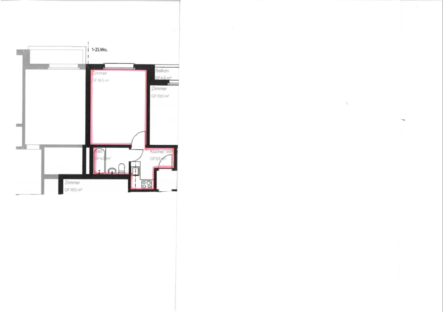 - Parkett in Korridor und Wohn-/Schlafzimmer